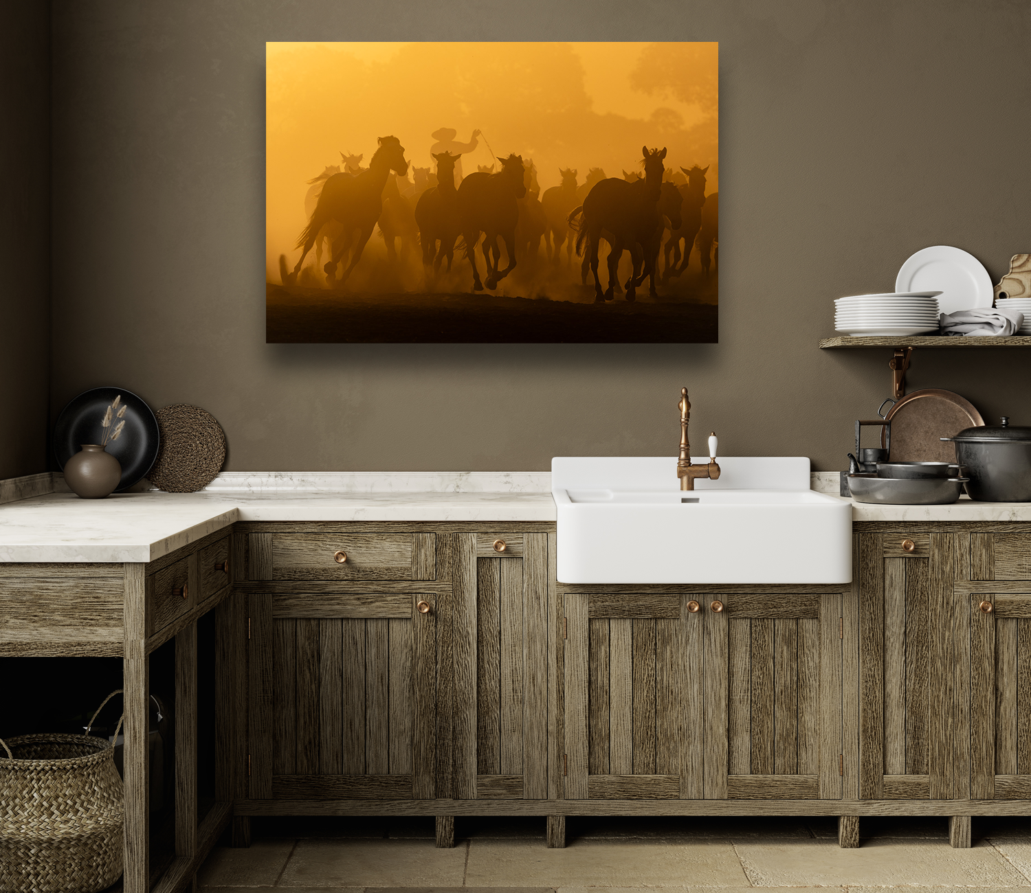 In Brazil’s Pantanal, horses are as essential as cattle. Bred to thrive in flooded wetlands, these sure-footed Pantanal horses carry cowboys through chest-deep water and endless marsh. At sunset, a herd charges through the dust, a reminder that life here depends on the strength and endurance of these remarkable animals. This limited edition fine art print highlights both the power of the herd and the culture they sustain.